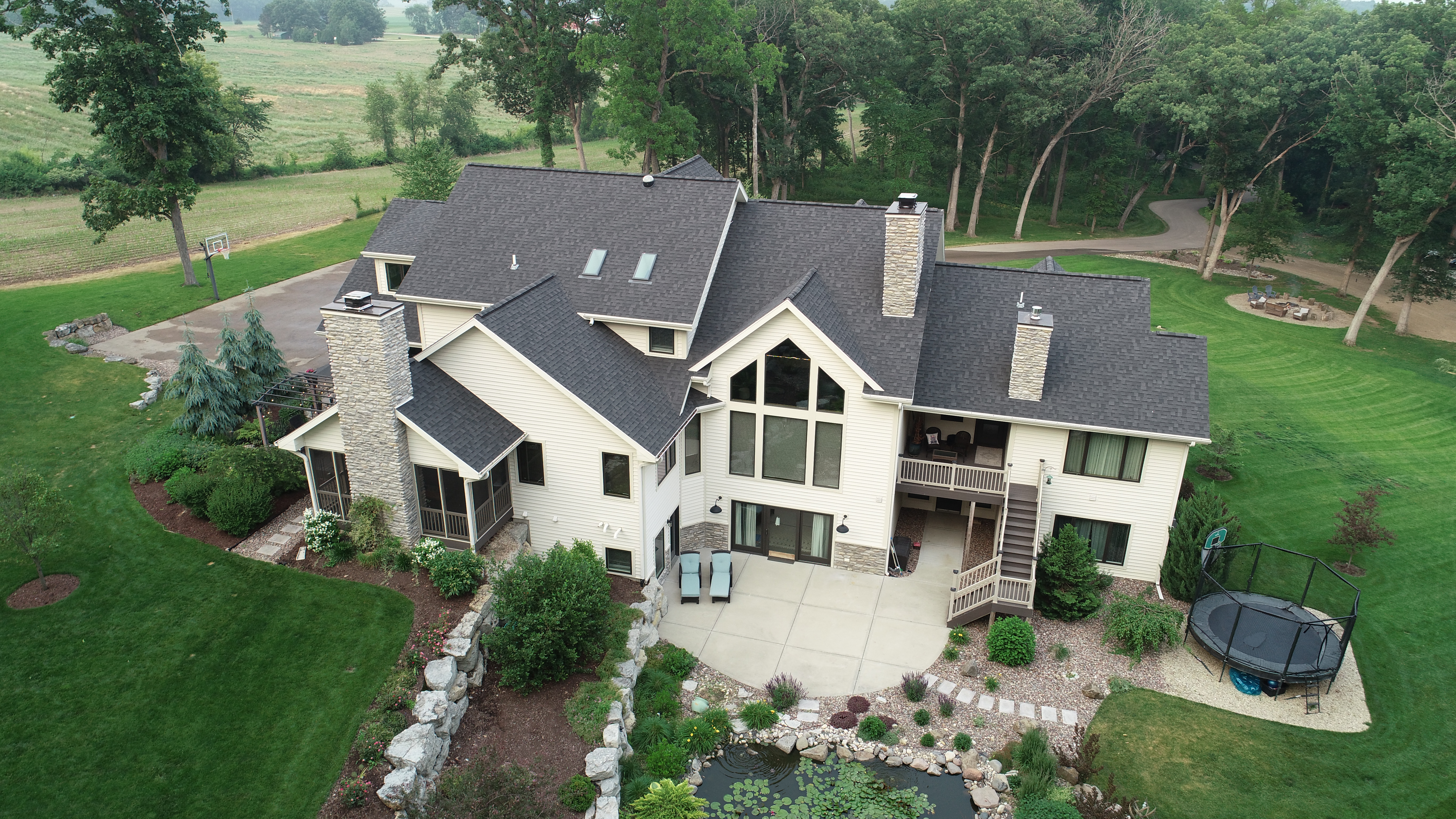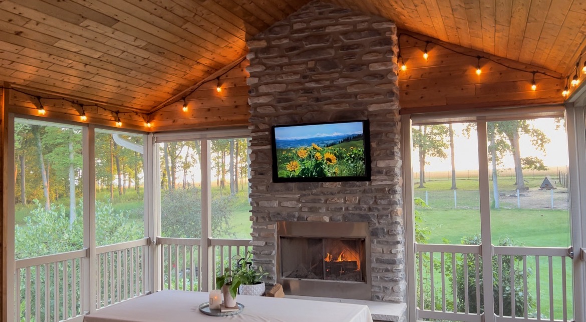 • Vaulted Screened Porch w/ Wood Burning Fireplace